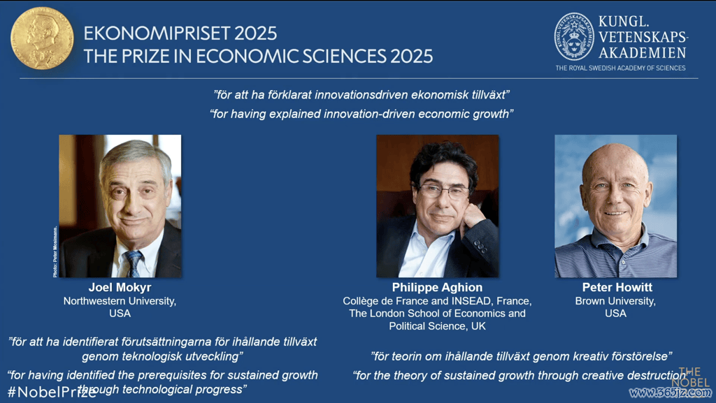 10月13日,2025年诺贝尔经济学奖得主揭晓。瑞典皇家科学院决定将2025年度瑞典中央银行纪念阿尔弗雷德·诺贝尔经济学奖授予乔尔·莫基尔(Joel Mokyr)、菲利普·阿吉翁(Philippe Aghion)和彼得·豪伊特(Peter Howitt),以表彰他们“对创新驱动型经济增长的阐释”。