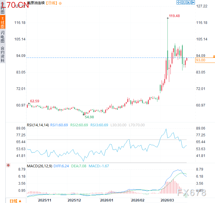 北京时间15:20,美原油连续现报93.06美元/桶。