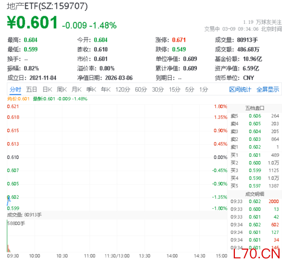 3月9日,截至9时33分,地产表现疲弱,代表A股龙头地产行情的中证800地产指数下跌1.26%,成份股方面,上海临港领跌2.04%,保利发展下跌1.99%,滨江集团下跌1.69%。